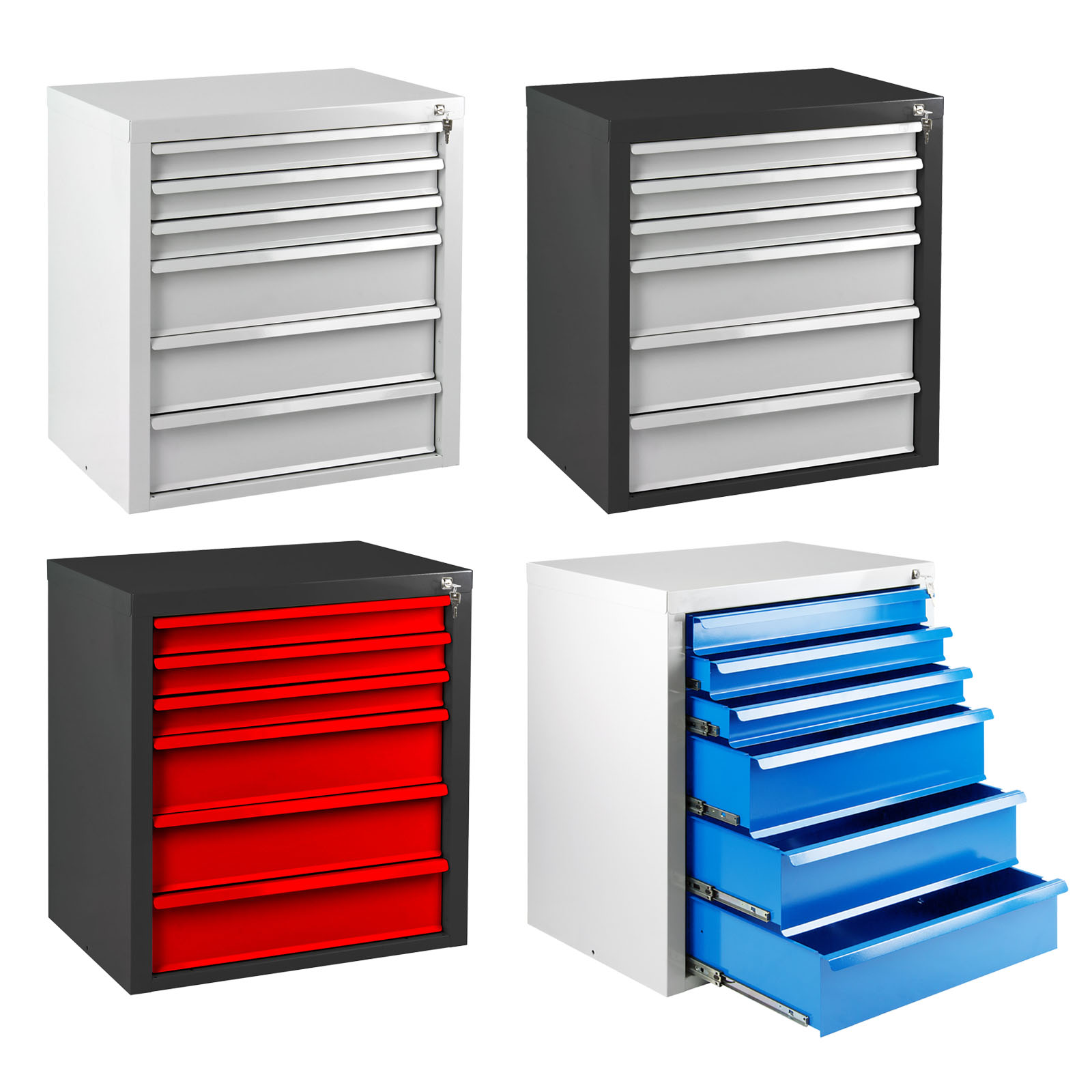 | Farbe | Wahlweise Korpus: Lichtgrau (RAL 7035) Schublade: Lichtgrau (RAL 7035) oder Korpus: Lichtgrau (RAL 7035) Schublade: Lichtblau (RAL 5012) oder Korpus: Anthrazitgrau (RAL 7016) Schublade: Lichtgrau (RAL 7035) oder Korpus: Anthrazitgrau (RAL 7016) Schublade: Verkehrsrot (RAL 3020) |