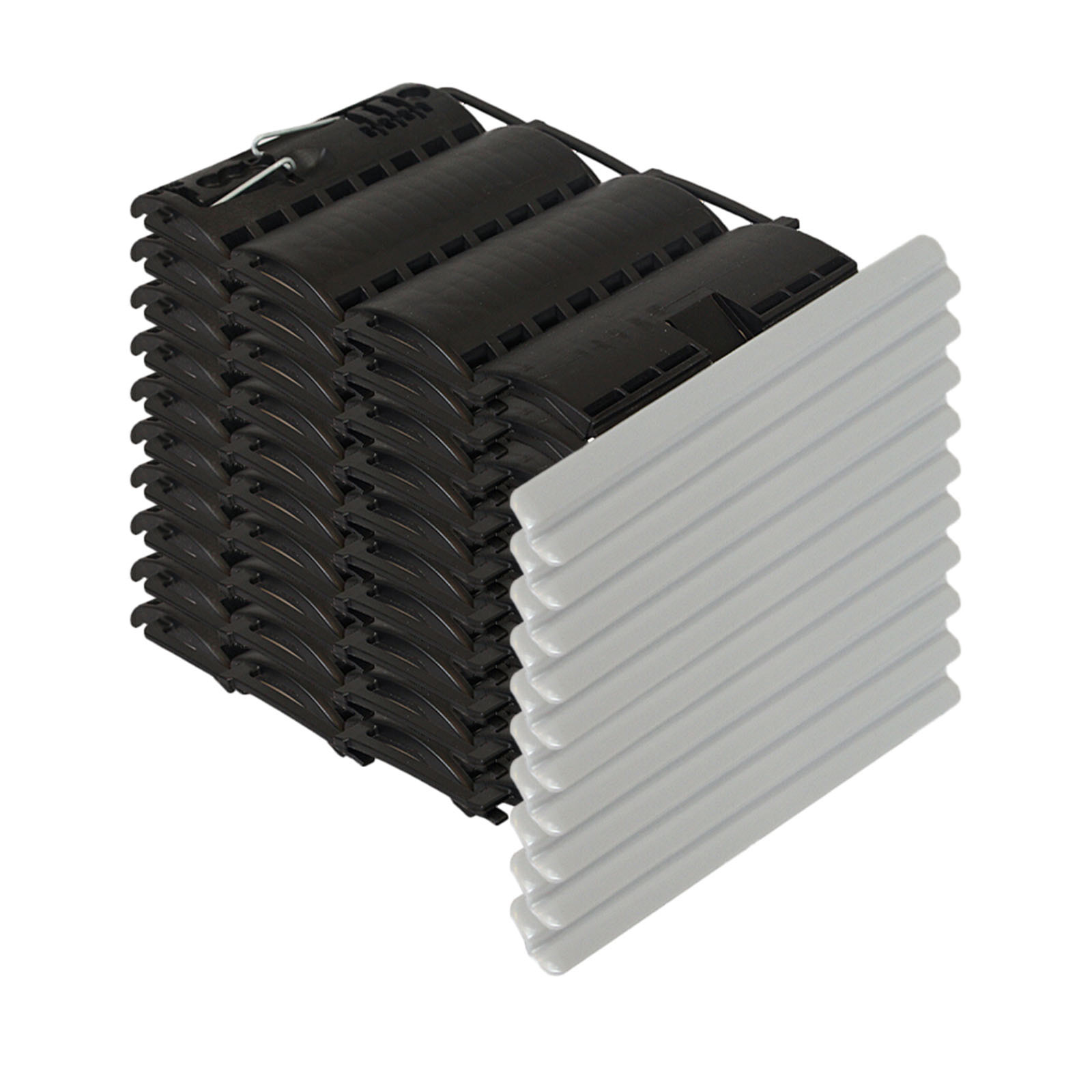 Der Clip-Wellenverbinder ist die Lösung für die stabile und schnelle Befestigung Ihres Rollladenbehanges an 8-Kant Rollladen-Stahlwellen (mit einem Durchmesser von 50 mm oder 60 mm). Dank seiner durchdachten Konstruktion und die einfache, schnelle Montage mit kleinen, stabilen Metall-Clips, gewährleistet er eine optimale Kraftübertragung vom Behang auf die Welle, insbesondere beim Anfahren der unteren Endlage, sowie einen deutlich erhöhten Einbruchschutz durch die Hochschiebesicherung.