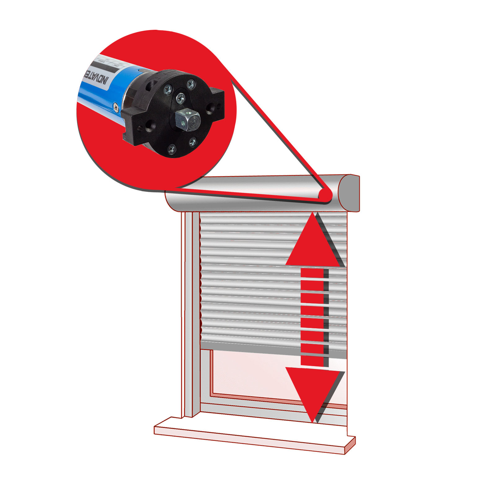 Der Rollladenmotor INO-M-6040 im praktischen Set mit einem höhenverstellbaren Abrolllager (für 10 mm Vierkant-Zapfen) bietet eine zuverlässige Komplettlösung für die motorisierte Bedienung Ihrer Rollläden.